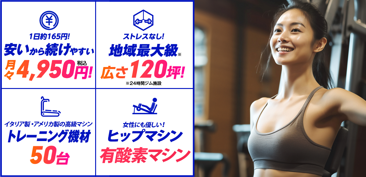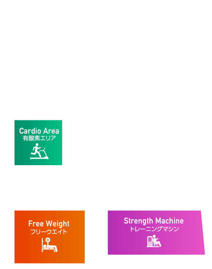 レッグエクステンション、レッグカール、プルダウン、チェストプレスなどの人気マシンは2台ずつ設置!