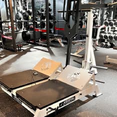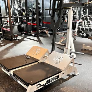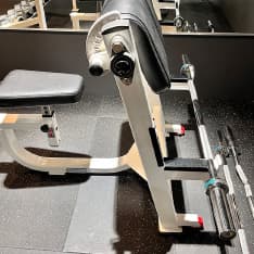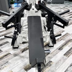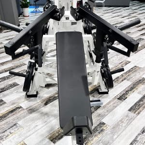 上半身への負荷がかからない構造のため、気軽にスクワットが行えるマシン!